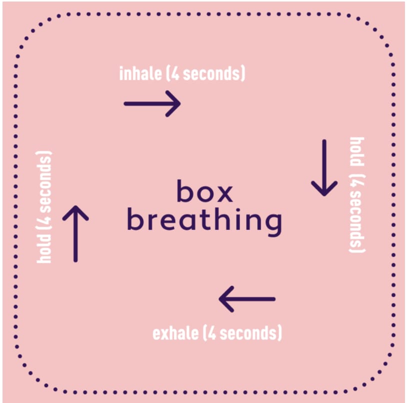 Try to do the box breathing method 3 times a day for the next week when you feel a little stressed. Note how it makes you feel before and after.